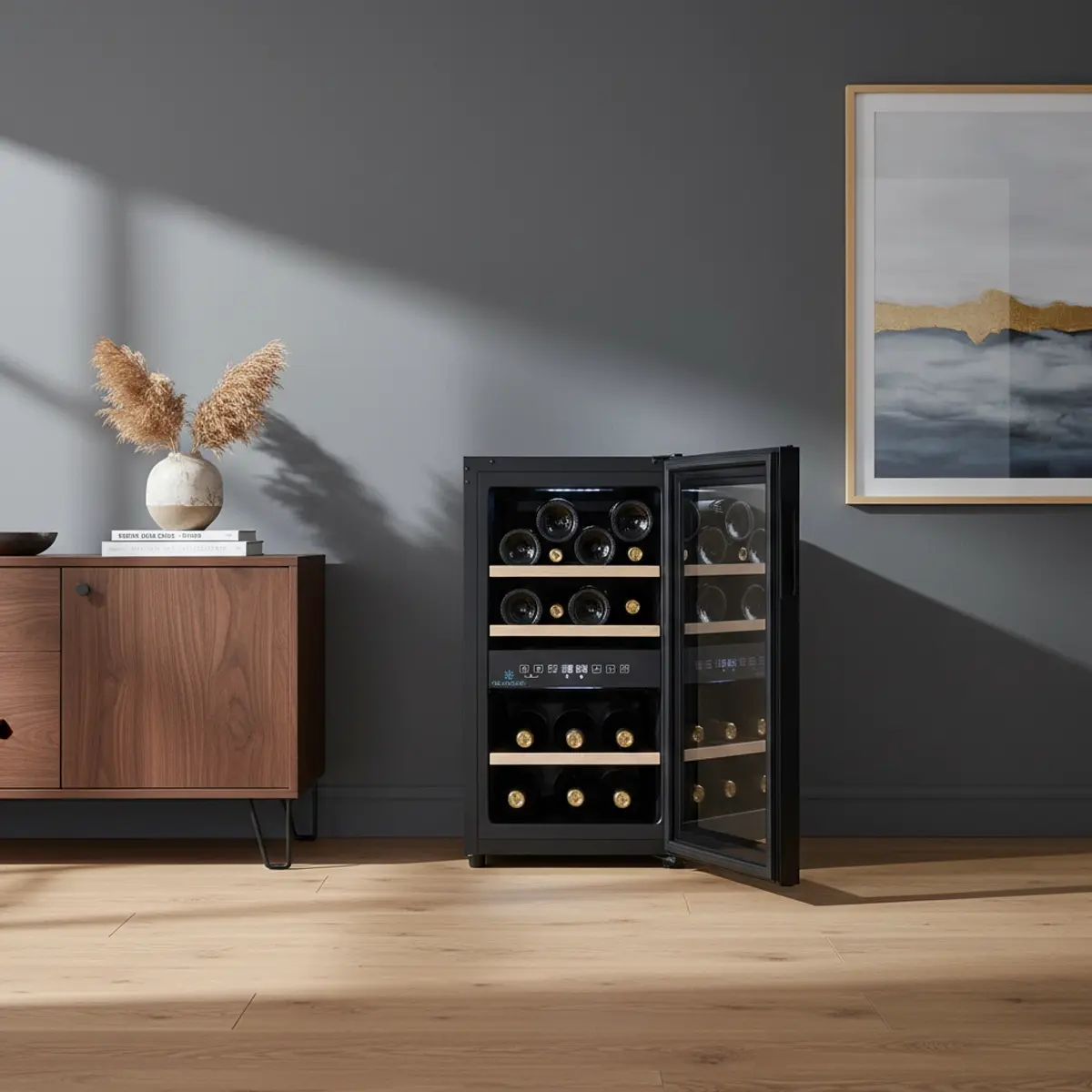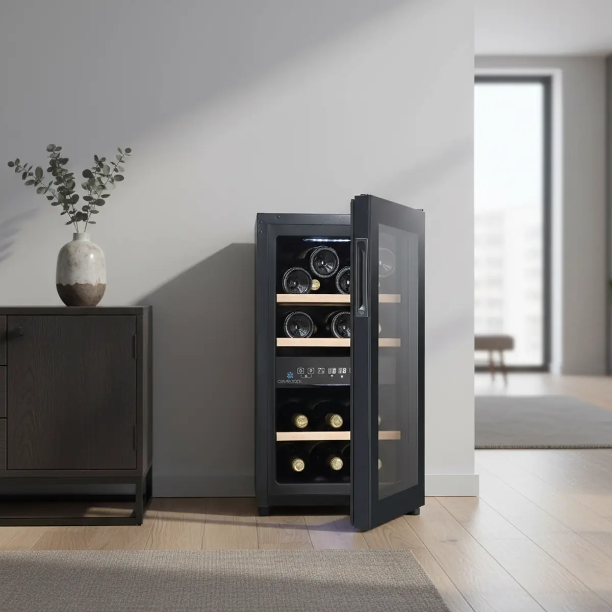 Met een capaciteit van maximaal 16 flessen is deze wijnkoelkast duidelijk ontworpen voor kleinere collecties. Dat maakt hem perfect voor gebruik in appartementen, keukens, kantines of bijvoorbeeld een thuiskantoor. De afmetingen zijn compact genoeg om hem eenvoudig te plaatsen zonder dat hij domineert in de ruimte.