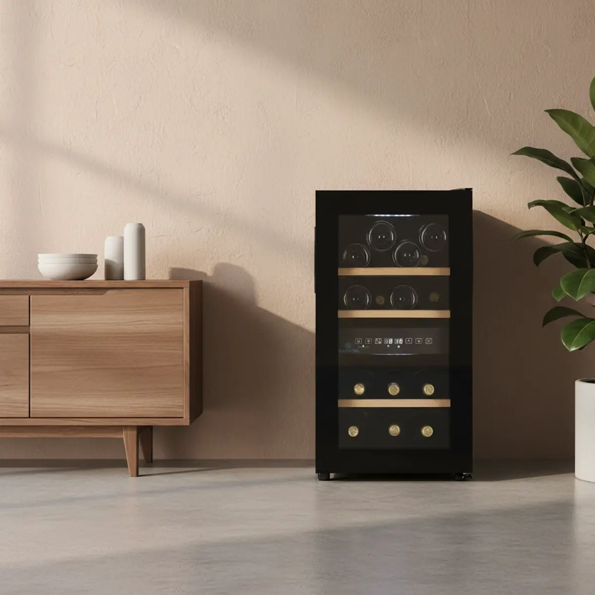 De Cavecool Joy Azurite 16 flessen wijnkoelkast (CC16DB) is een compacte maar verrassend complete wijnkoelkast voor wie zijn wijncollectie op de juiste temperatuur wil bewaren zonder direct een grote kast in huis te halen. Dankzij de twee afzonderlijke koelzones, het strakke design en de degelijke techniek is dit model ideaal voor zowel beginnende wijnliefhebbers als praktisch ingestelde gebruikers die gewoon hun wijn goed willen opslaan.