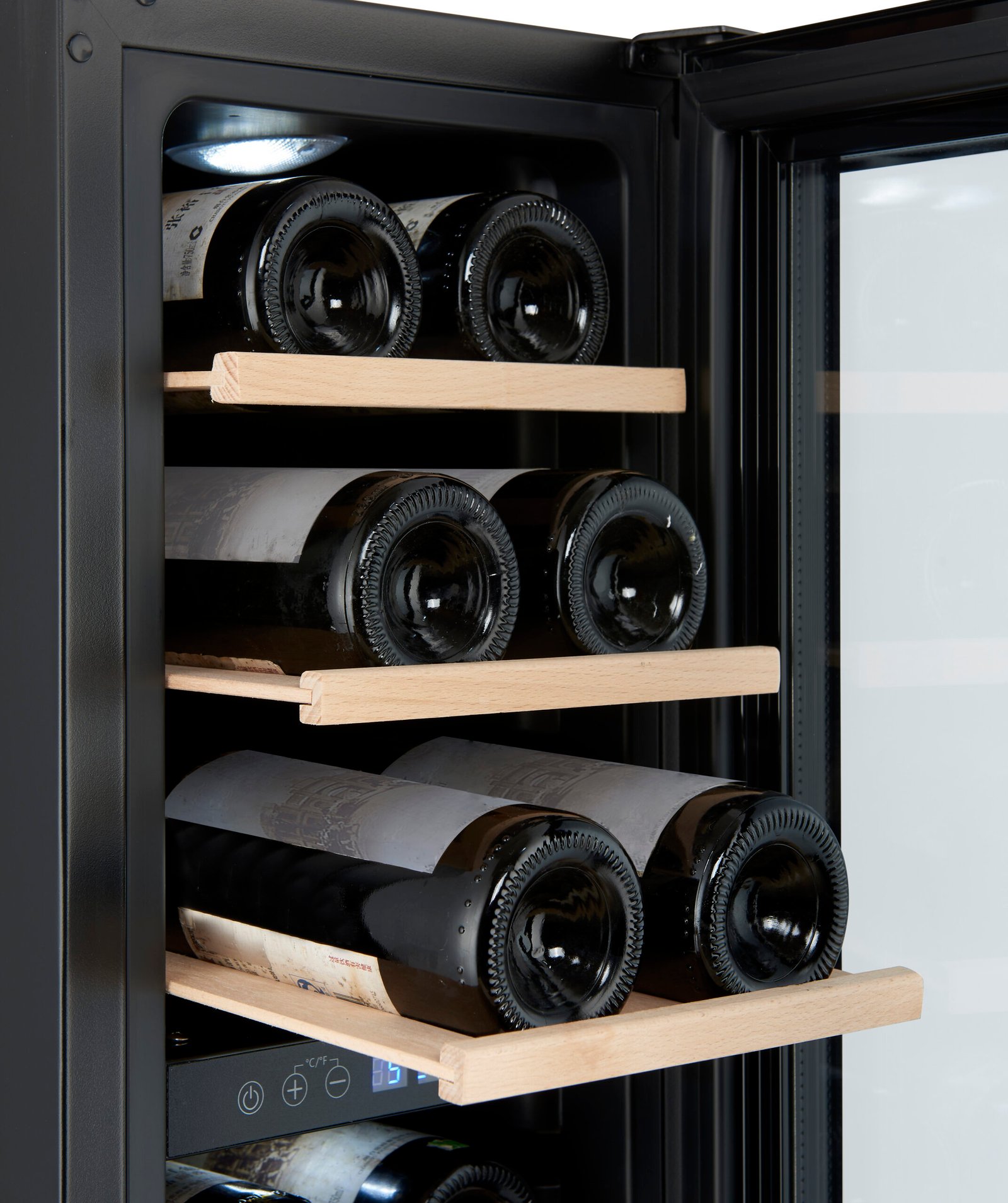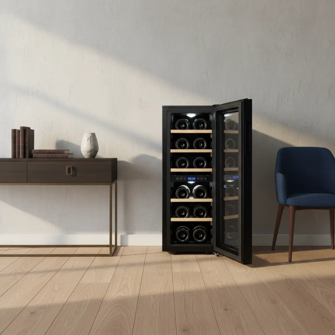 Dit betekent dat je zonder gedoe verschillende soorten wijn tegelijk op serveertemperatuur kunt bewaren. Geen geschuif meer tussen koelkast en wijnkast, wat in de praktijk toch altijd eindigt in half gekoelde wijn en irritatie.