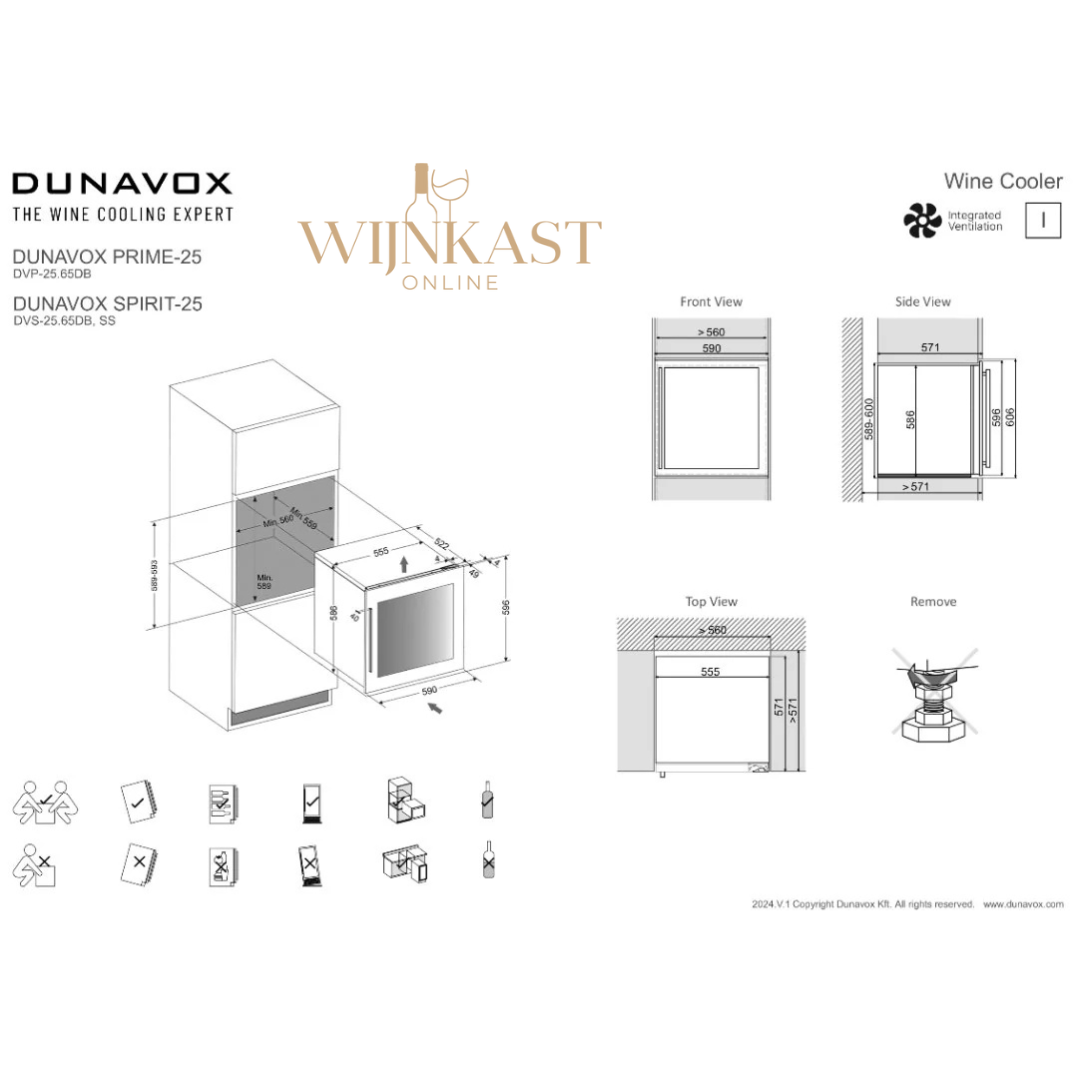 De Dunavox Prime-25 is ontwikkeld met aandacht voor praktische inzet in moderne keukens. De wijnkoelkast kan zowel worden ingebouwd als onder een aanrecht worden geplaatst, zonder aanvullende ventilatieruimte aan de achterzijde. De zwarte handgreep geeft de deur een robuuste en professionele uitstraling en zorgt voor een prettige grip bij dagelijks gebruik. De UV-beschermde glazen deur voorkomt dat schadelijk licht invloed heeft op de kwaliteit en rijping van de opgeslagen wijnen.