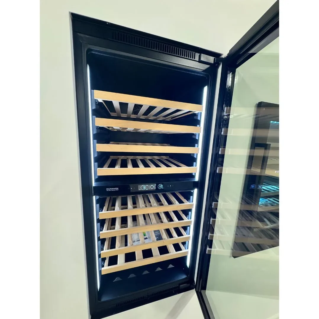 Met ruimte voor 70 flessen biedt de Dunavox Prime-70 voldoende capaciteit voor een uitgebreide en gevarieerde wijncollectie. De flessen worden opgeslagen op massief beukenhouten leggers die telescopisch uitschuifbaar en deels verwijderbaar zijn. Hierdoor ontstaat flexibiliteit voor het opslaan van grotere flesformaten, zoals champagne of speciale wijnflessen.