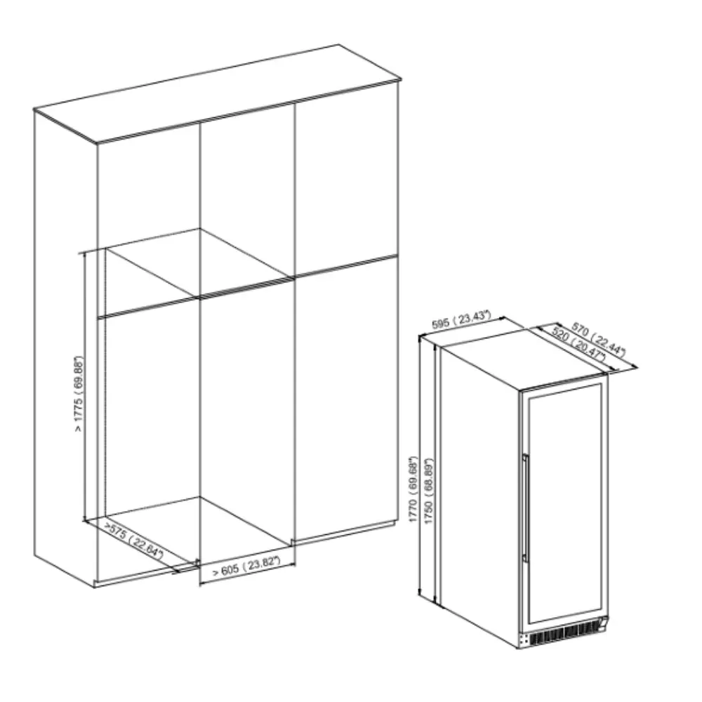 De Cavecool Ideal Emerald 112 flessen wijnkoelkast is ontworpen voor zowel vrijstaand gebruik als inbouw. Met zijn afmetingen past hij goed in een standaard keukensituatie of als onderdeel van een wijnwand.