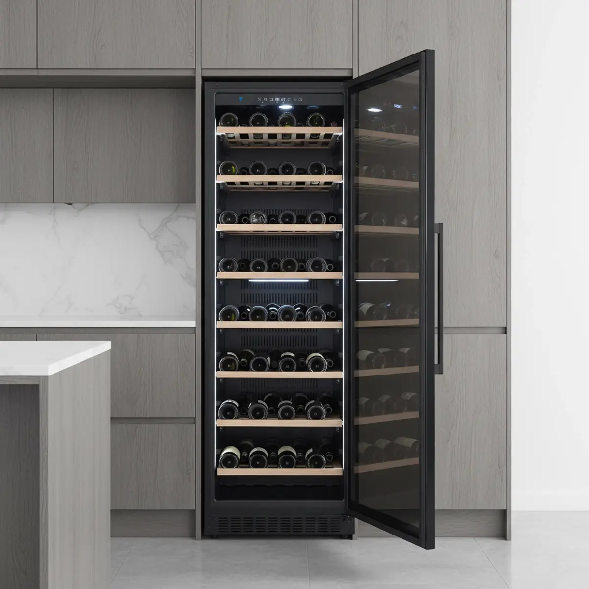 Deze wijnkast werkt met een compressor-koelsysteem en gebruikt het koelmiddel R600a. Dit zorgt voor stabiele temperaturen en betrouwbare prestaties, zelfs bij grotere inhoud.