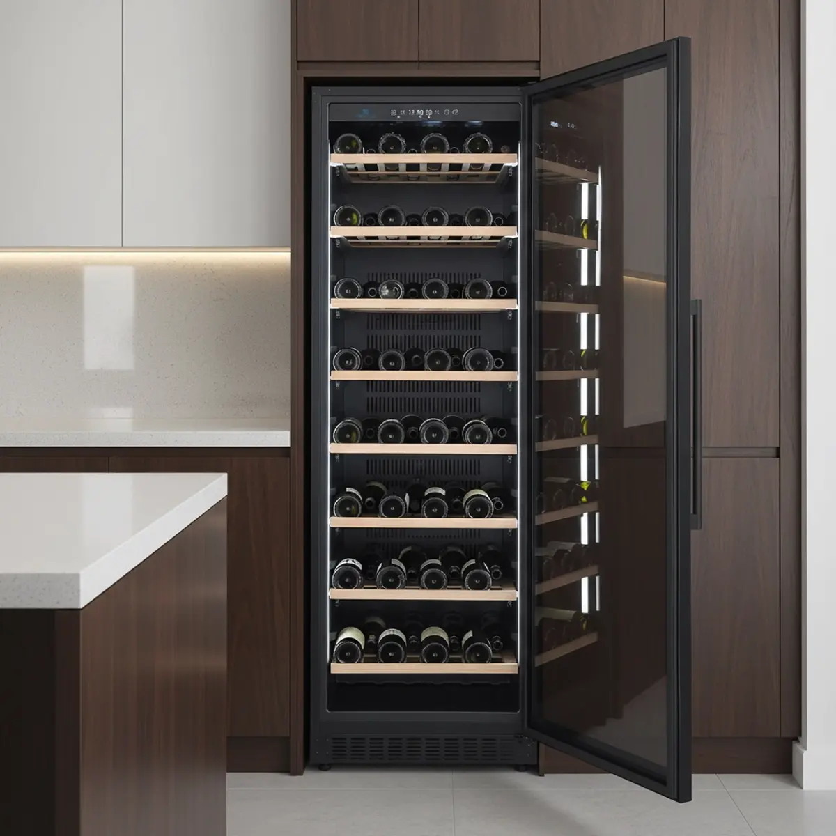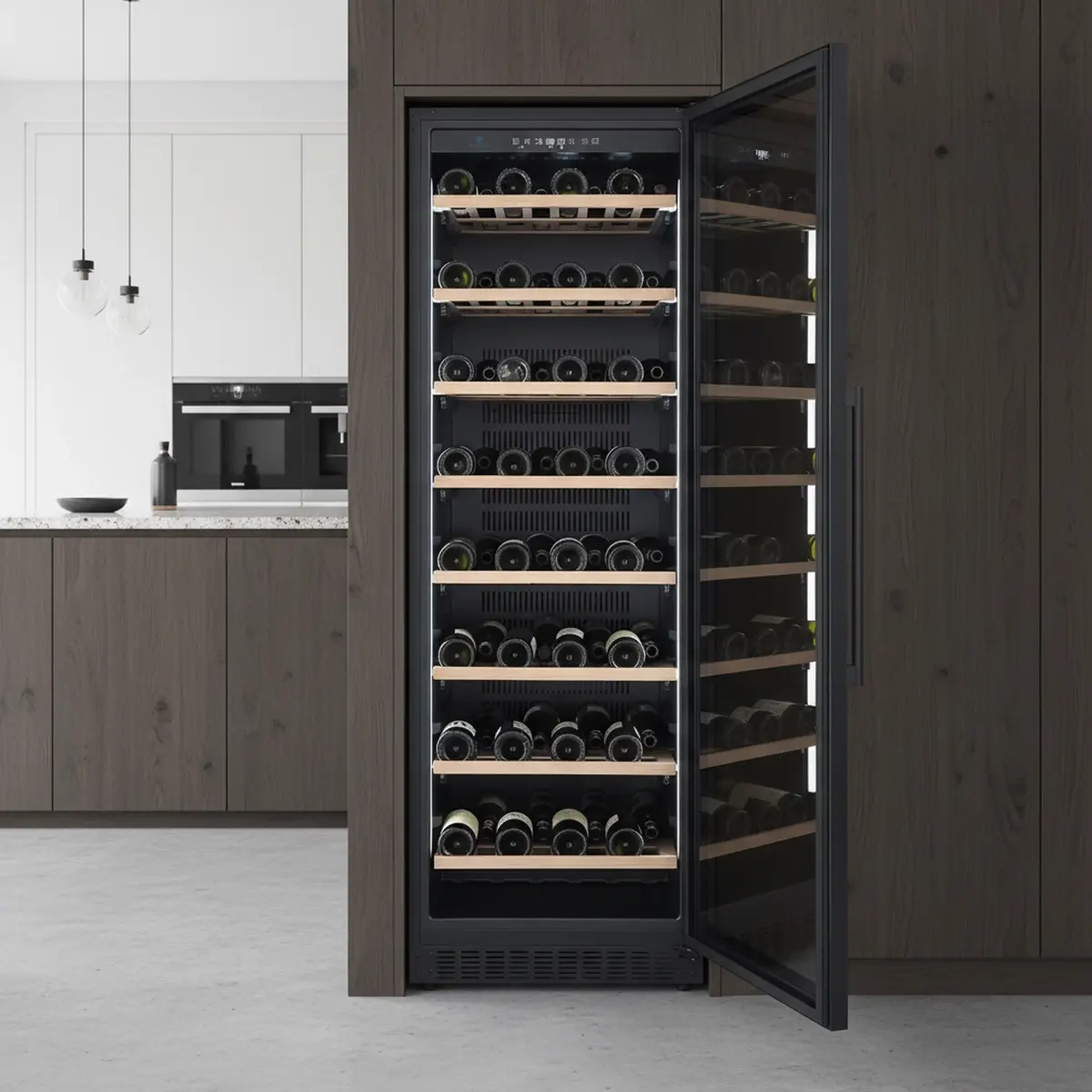 De Cavecool Ideal Emerald 112 flessen multizone wijnkoelkast (CC328MB-U1) is een ruime en veelzijdige wijnkast voor wie serieus met wijnopslag bezig is. Met plaats voor maximaal 112 flessen en een slim multizone-systeem biedt dit model flexibiliteit voor zowel serveren als bewaren. Dankzij het strakke Deense design en de praktische indeling past deze wijnkoelkast moeiteloos in zowel moderne keukens als aparte wijnruimtes.
