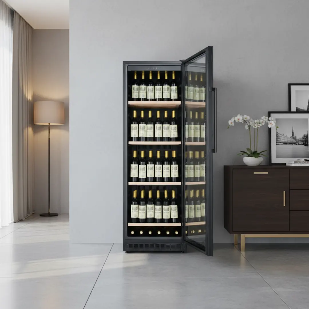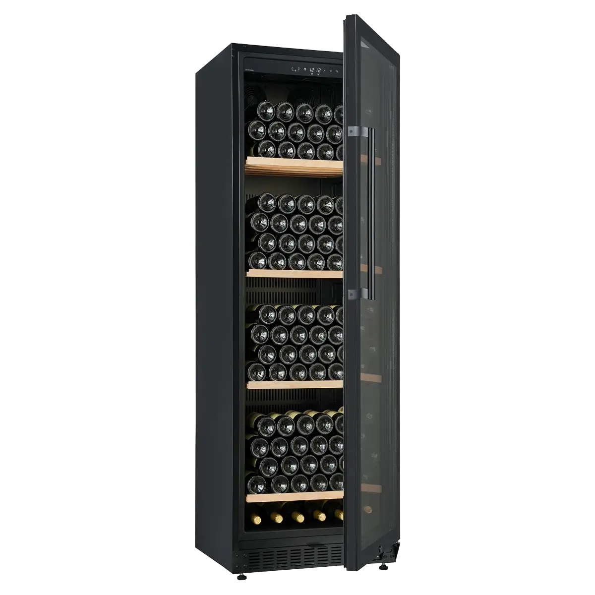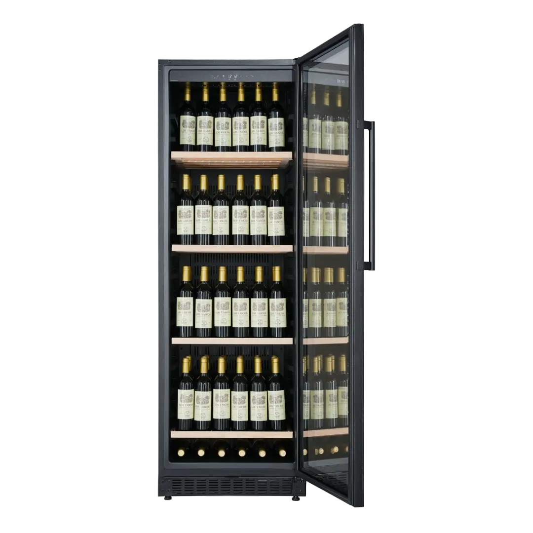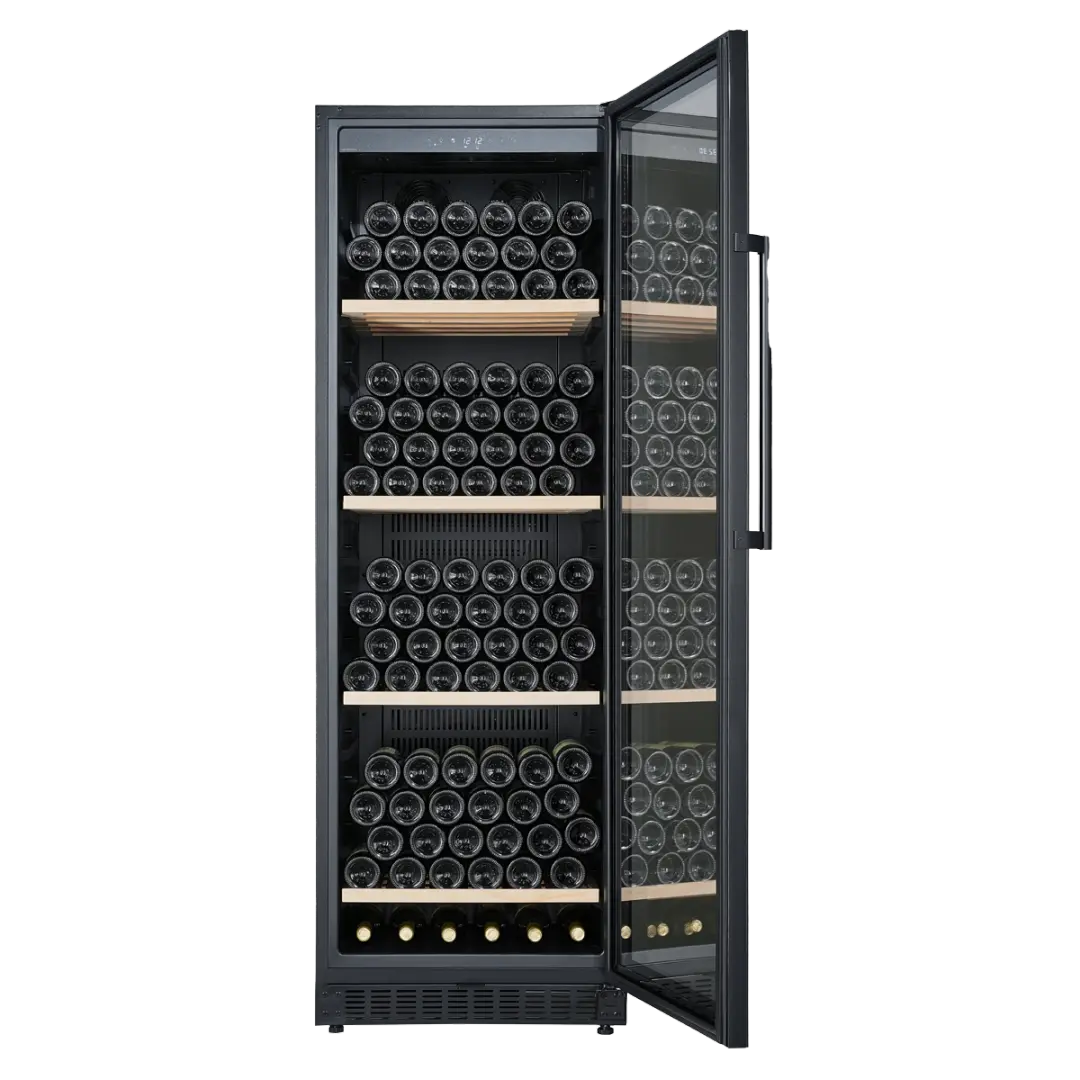 Met plaats voor maximaal 190 flessen (Bordeaux-formaat) is deze wijnkoelkast geschikt voor zowel fanatieke wijnliefhebbers als horeca- of zakelijke toepassingen. De kast is voorzien van vier stevige beukenhouten planken die zorgen voor een stabiele en overzichtelijke opslag.