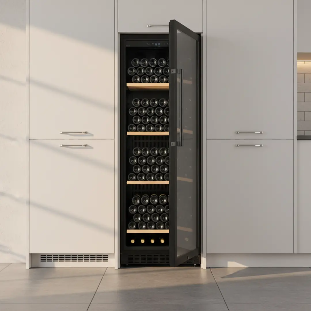 De UV-beschermde glazen deur speelt daarnaast een belangrijke rol bij het beschermen van de inhoud tegen schadelijk licht. Direct zonlicht kan namelijk chemische reacties in wijn veroorzaken, wat de smaak aantast. Door deze bescherming blijven aroma’s en structuur beter behouden.